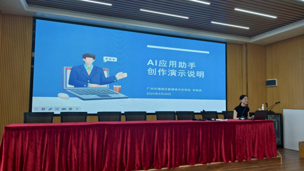 紧接着,新塘镇天伦学校钟淼君老师做AI应用助手创作演示说明。钟老师通过对比,帮助与会老师明确了“AI应用助手=大模型+预设结构化提示词”的概念,并通过增城旅行小助手和牛仔裤设计助手的创作过程直观展示了如何从零开始创文字应用和图片应用,帮助与会老师更好理解AI相关技能。